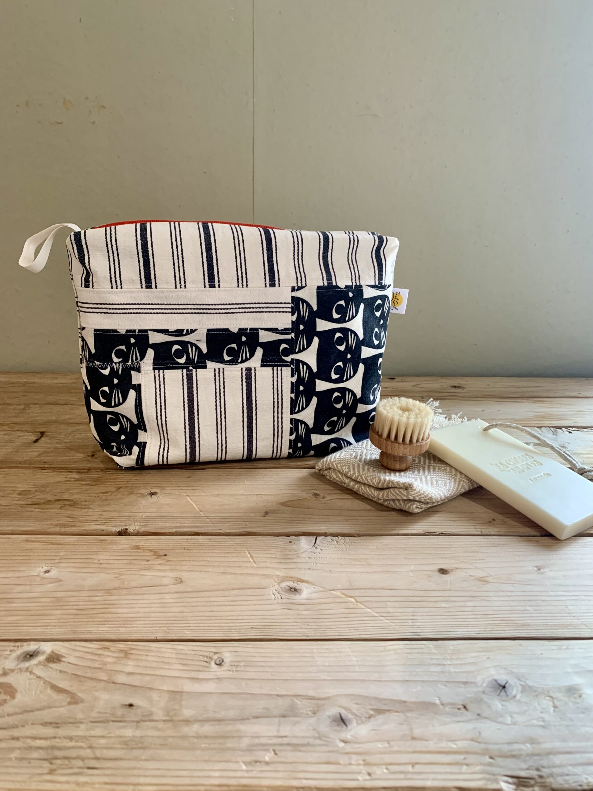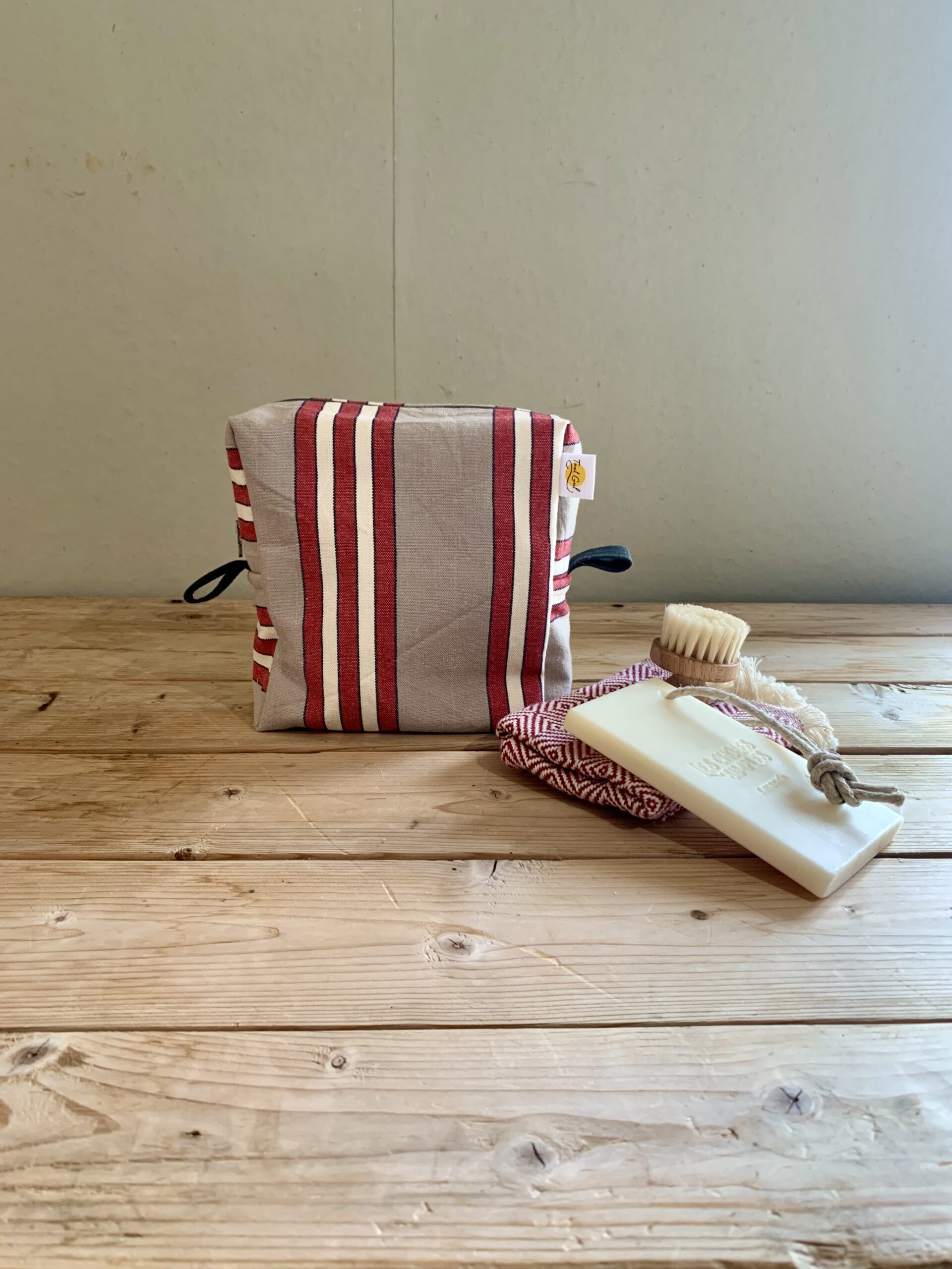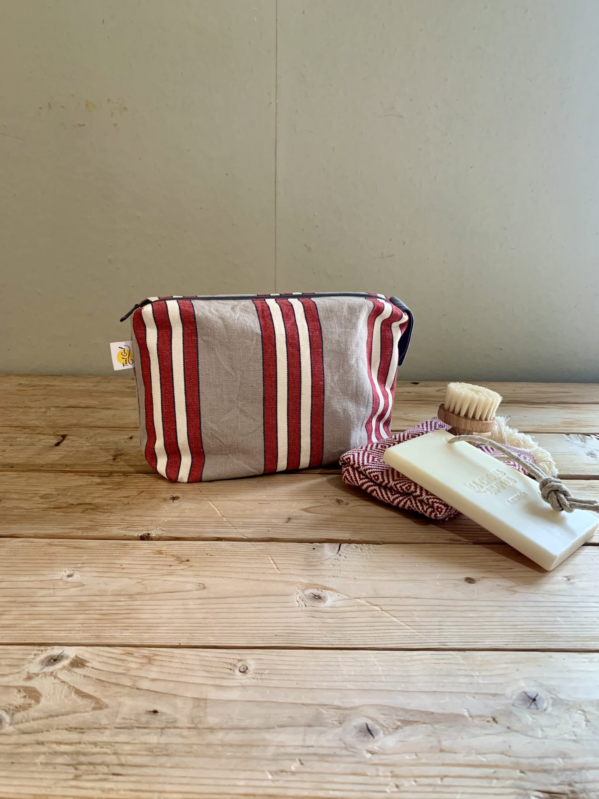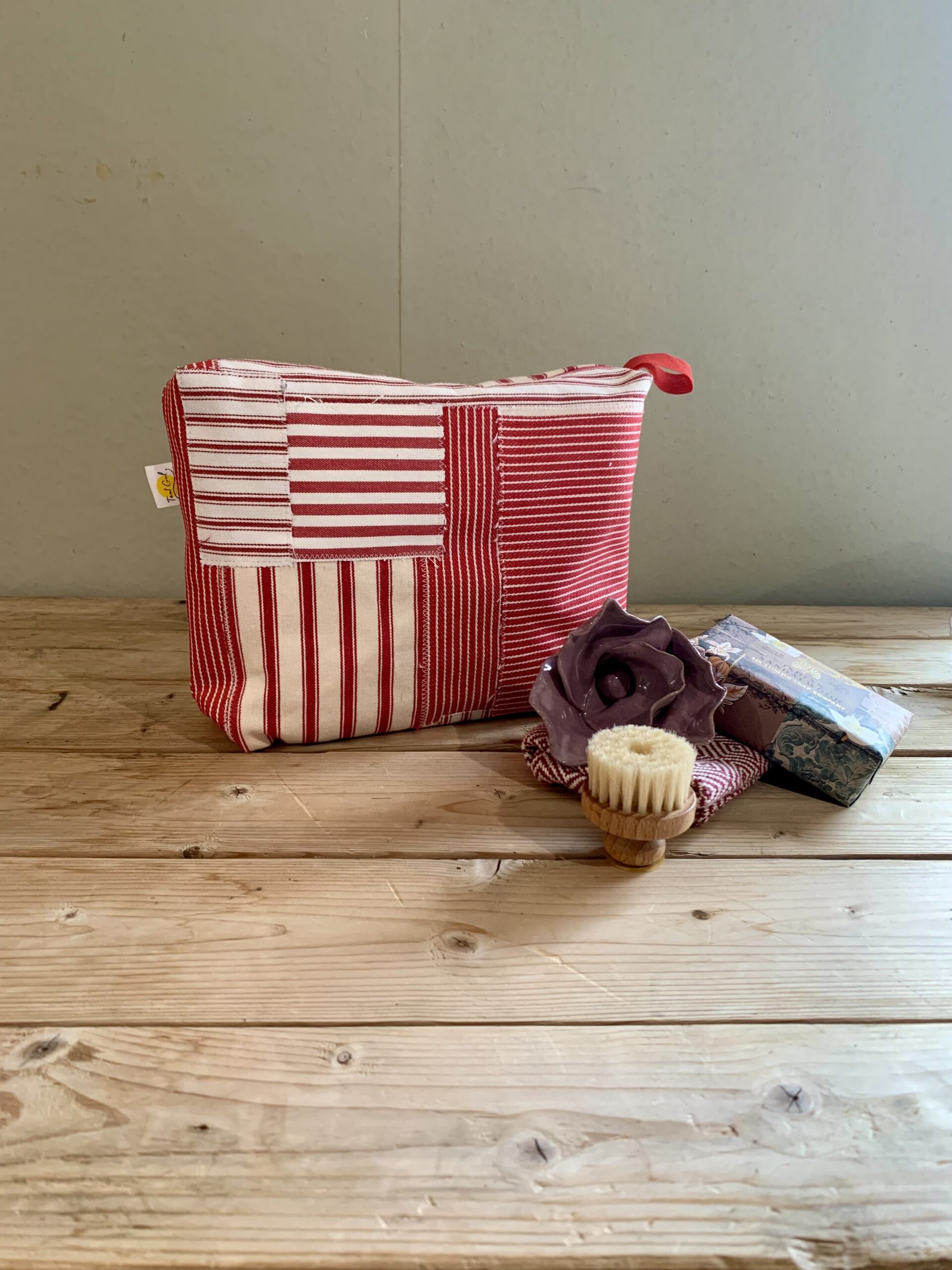 Yttertyg: randiga lappar i olika mönster i rött och vitt, O:SPILL