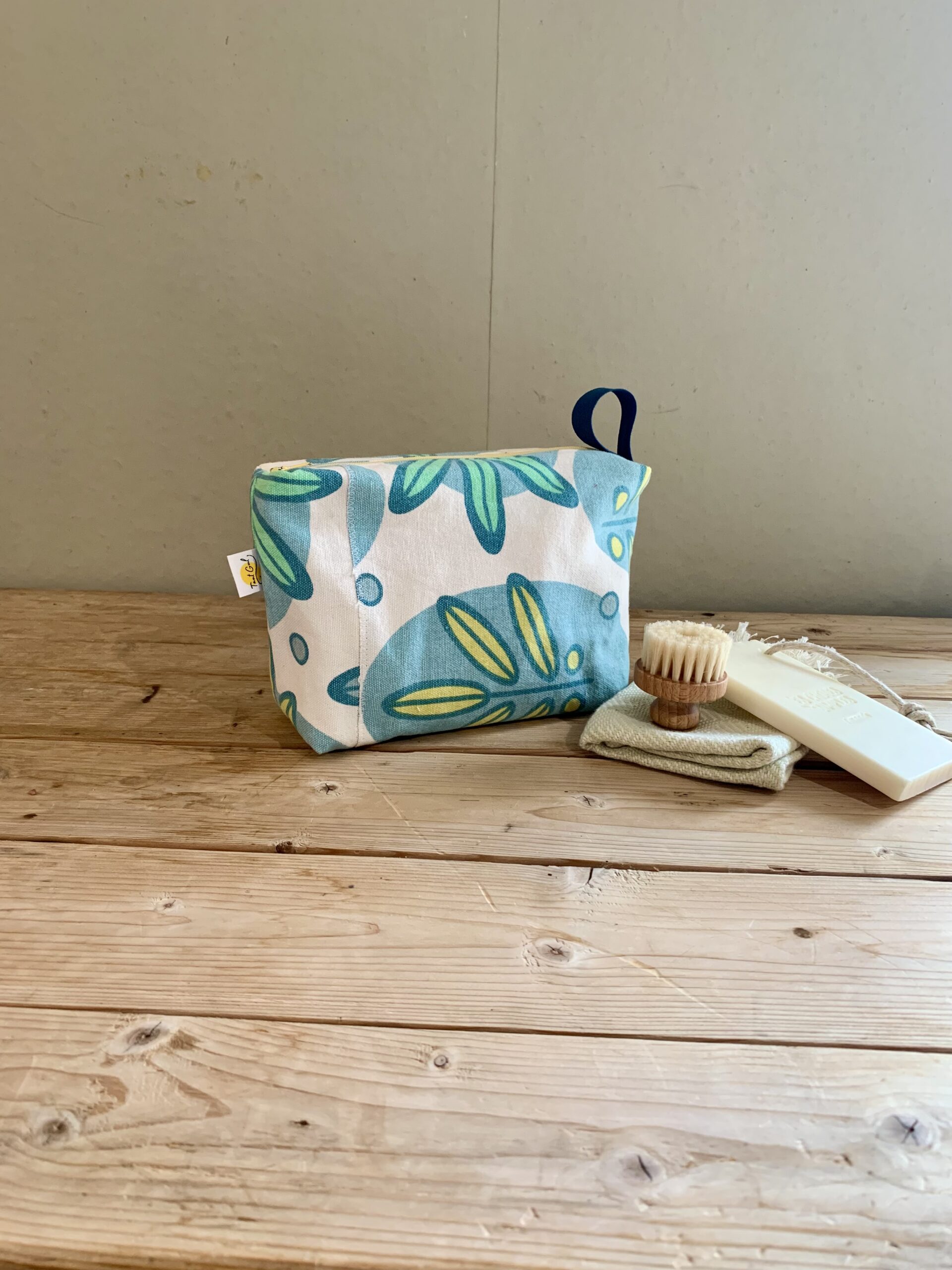 Yttertyg: mönster i turkos och gult på vit bakgrund, O:SPILL