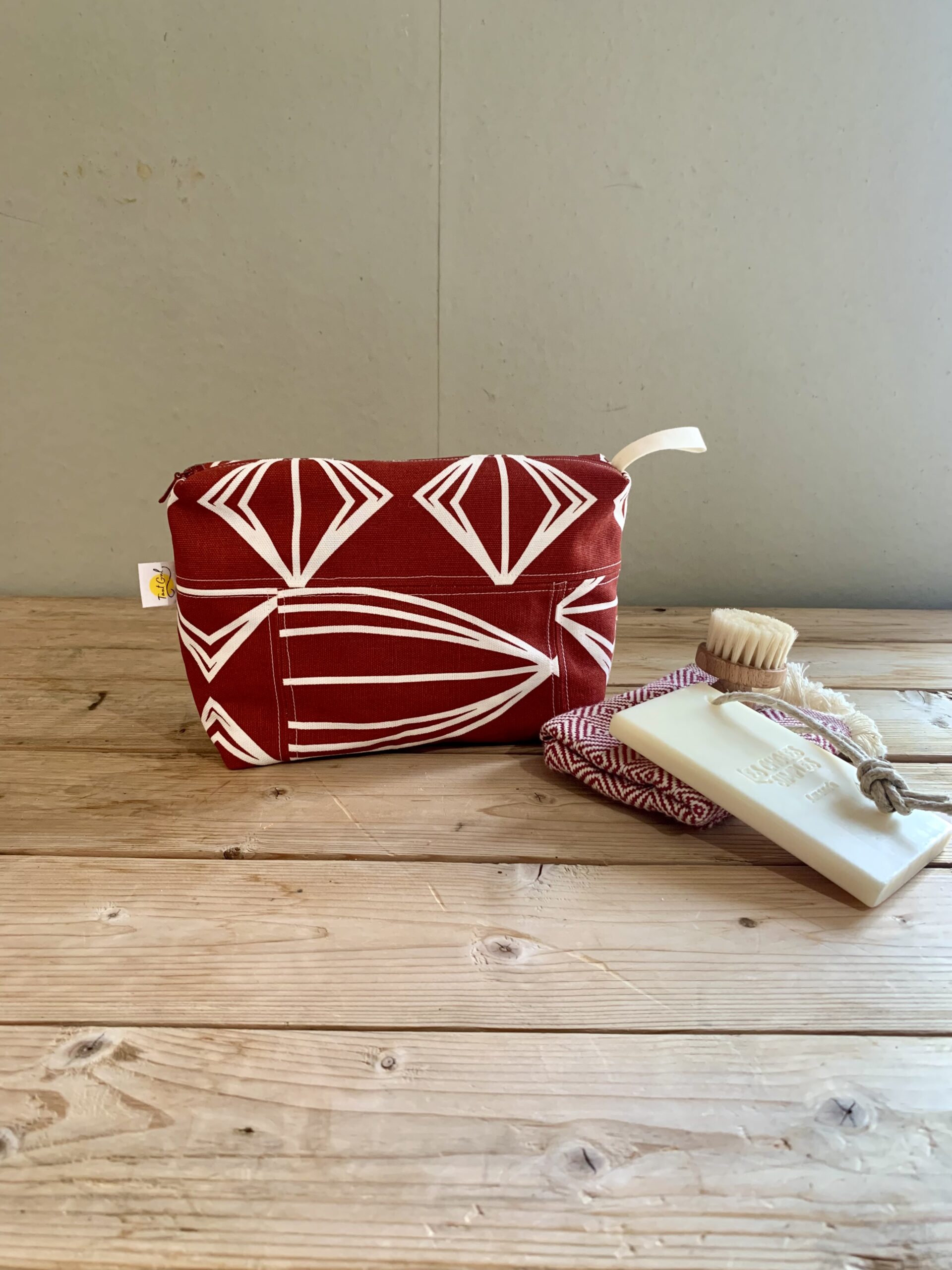 Yttertyg: vita mönster på vinröd botten, O:SPILL