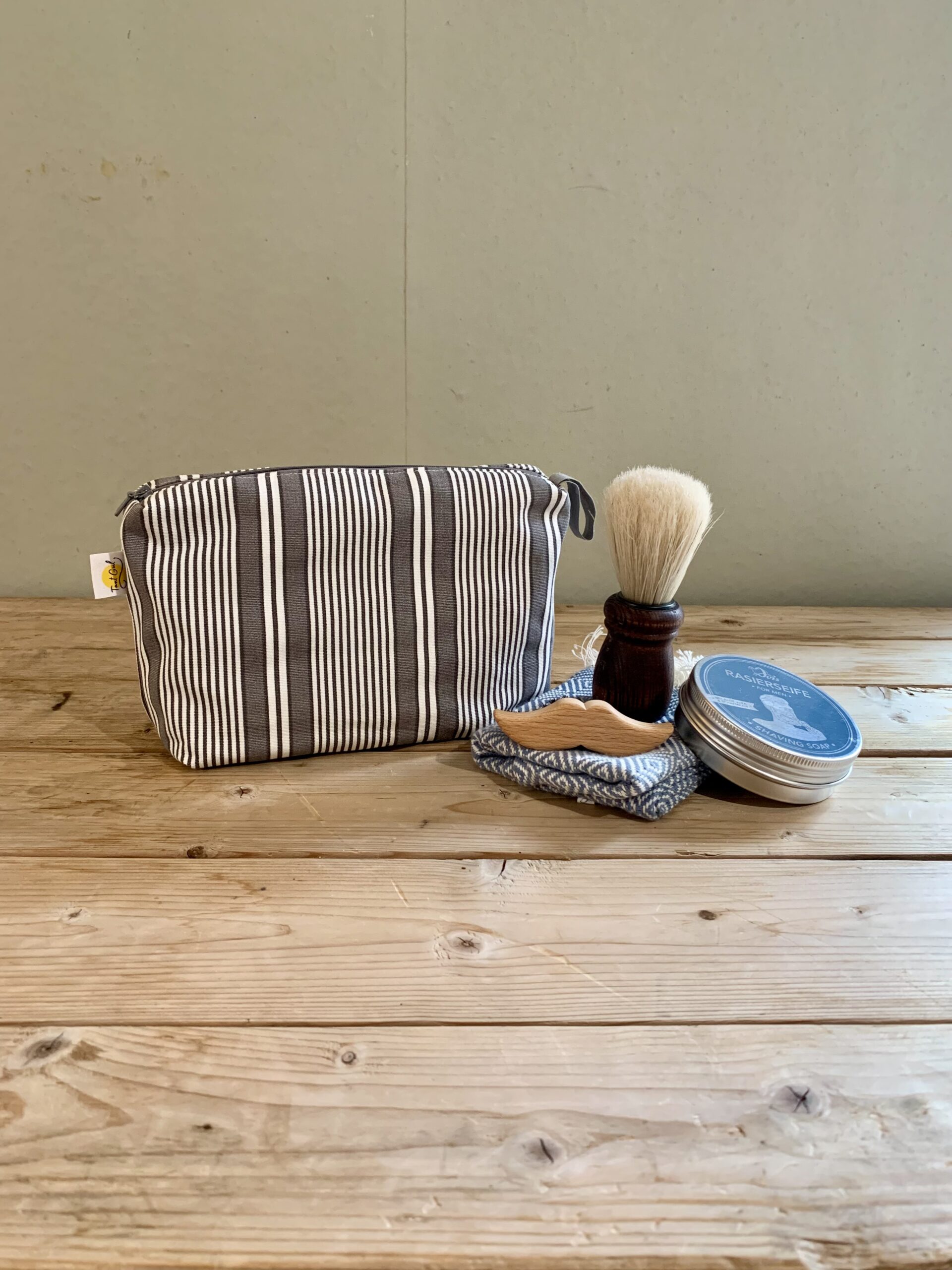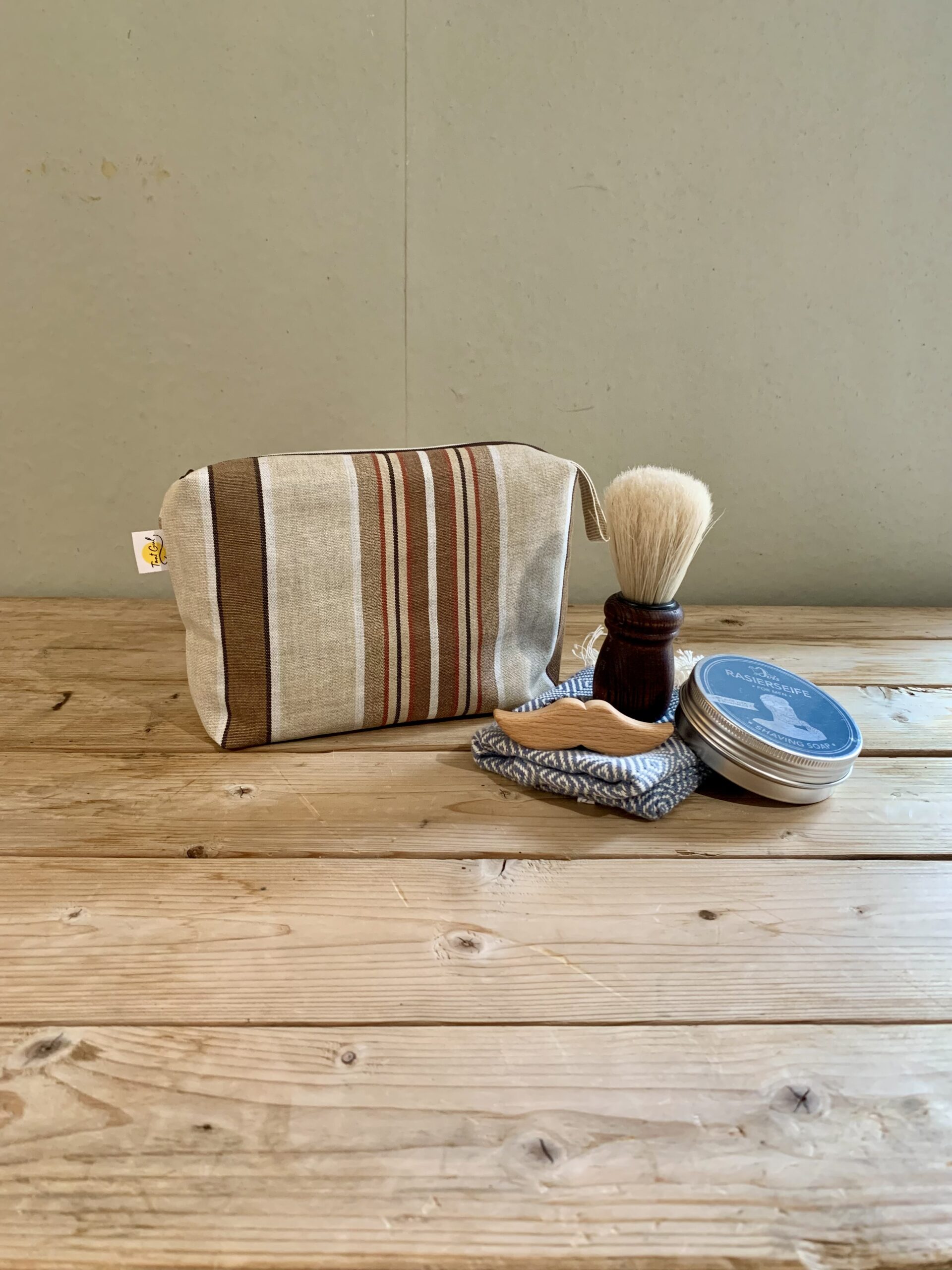 Yttertyg: randigt i brunt, beige och mörkgrått
