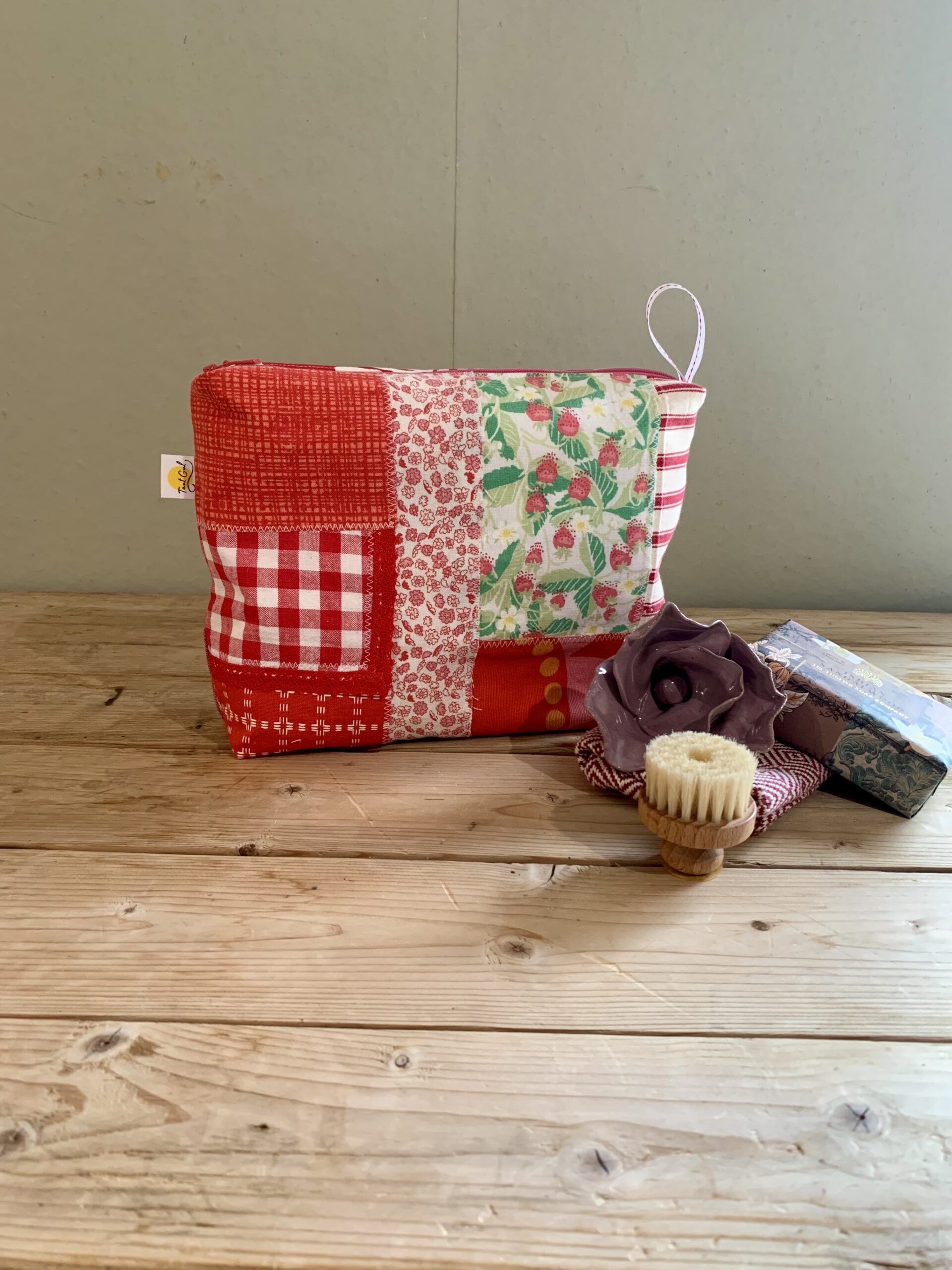 Yttertyg: lappar i olika mönster i rött och rosa, O:SPILL