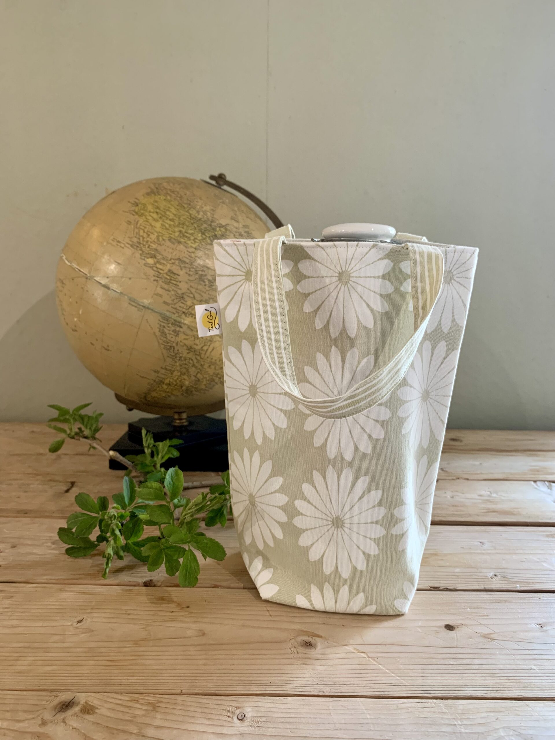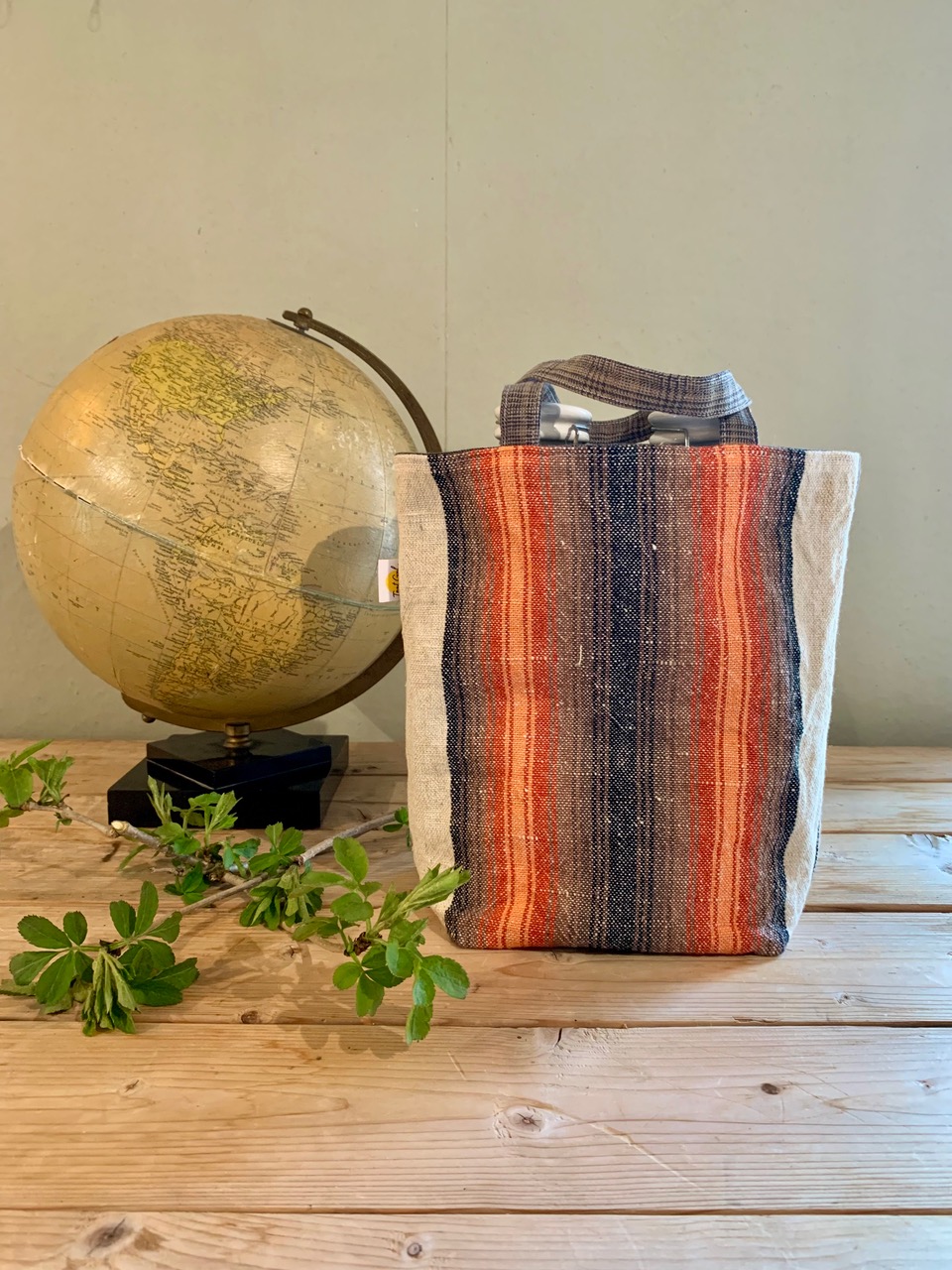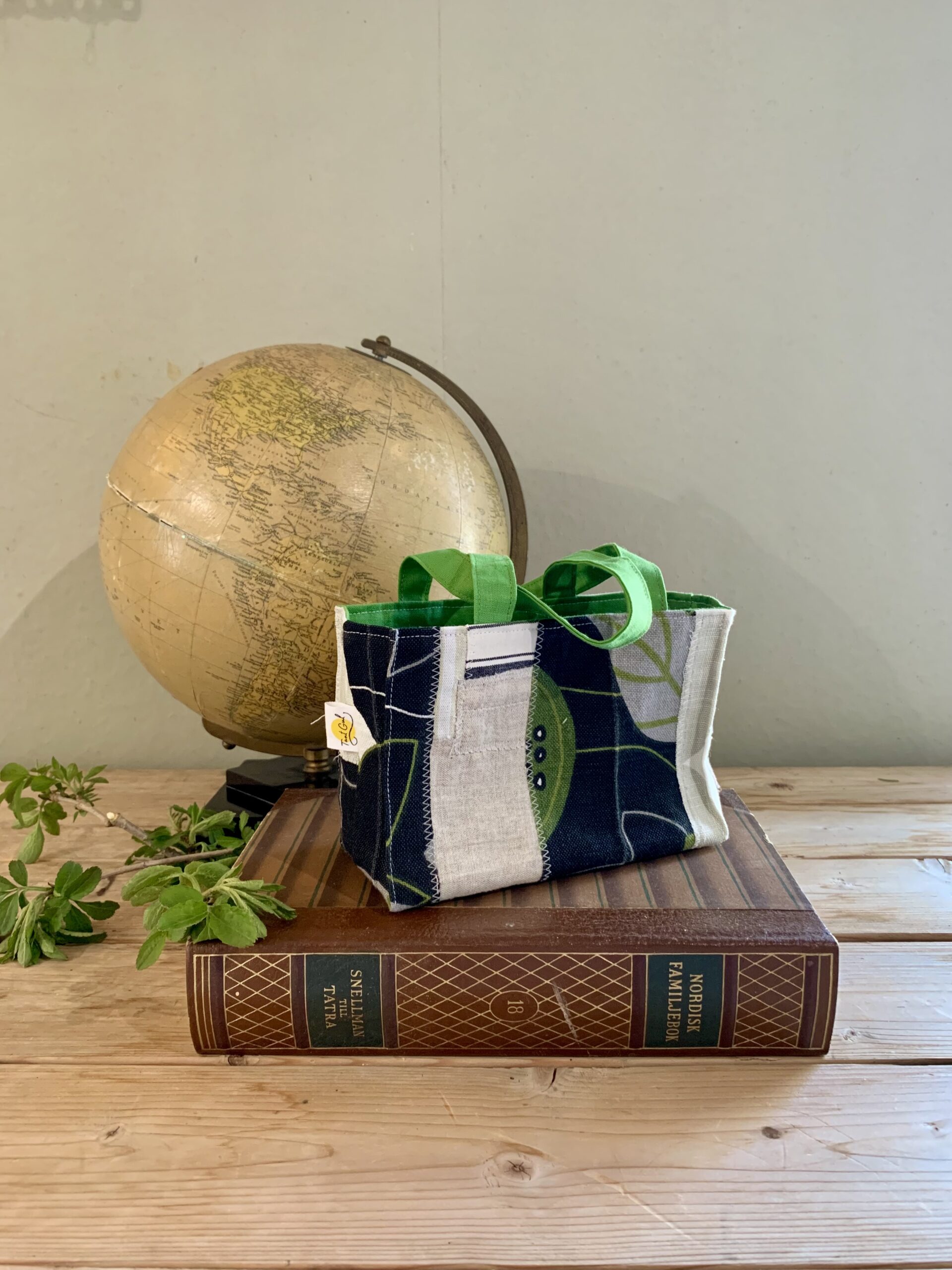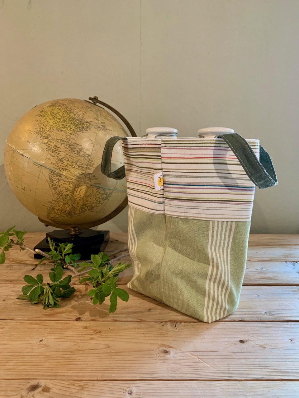 Handtag: randiga i ljust blekgrönt och vitt