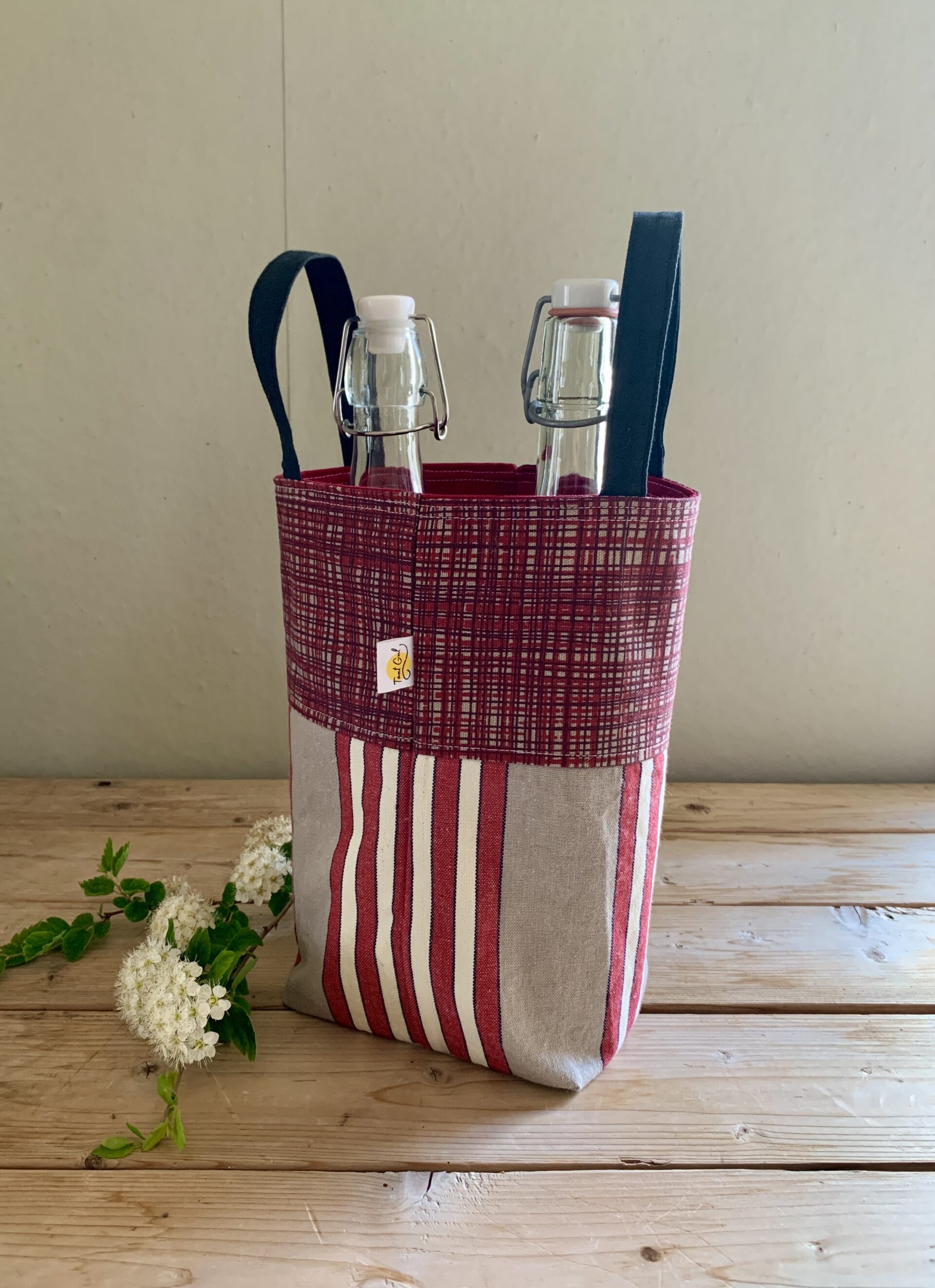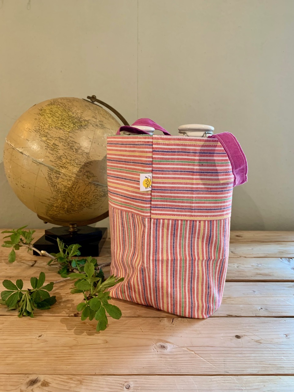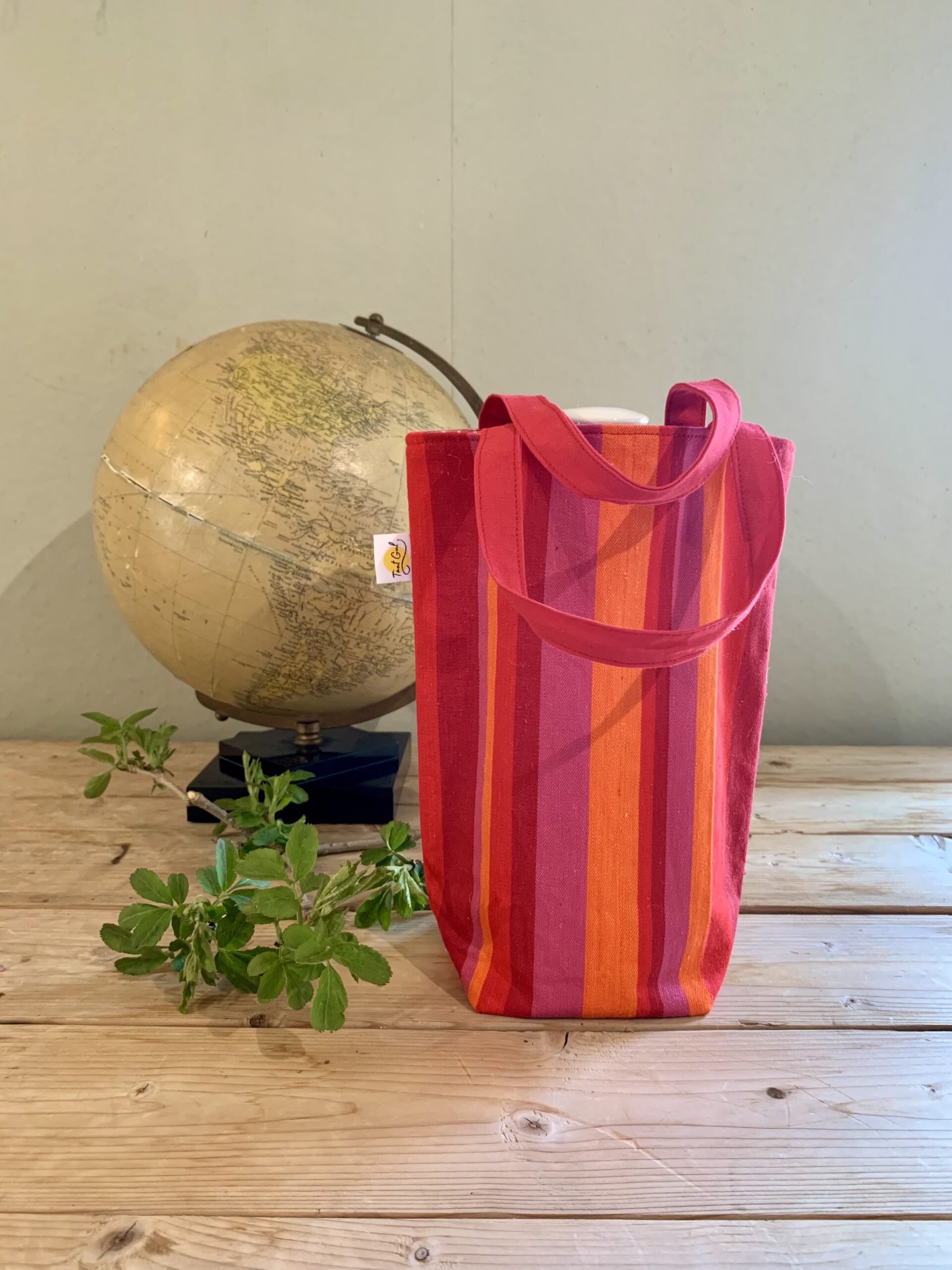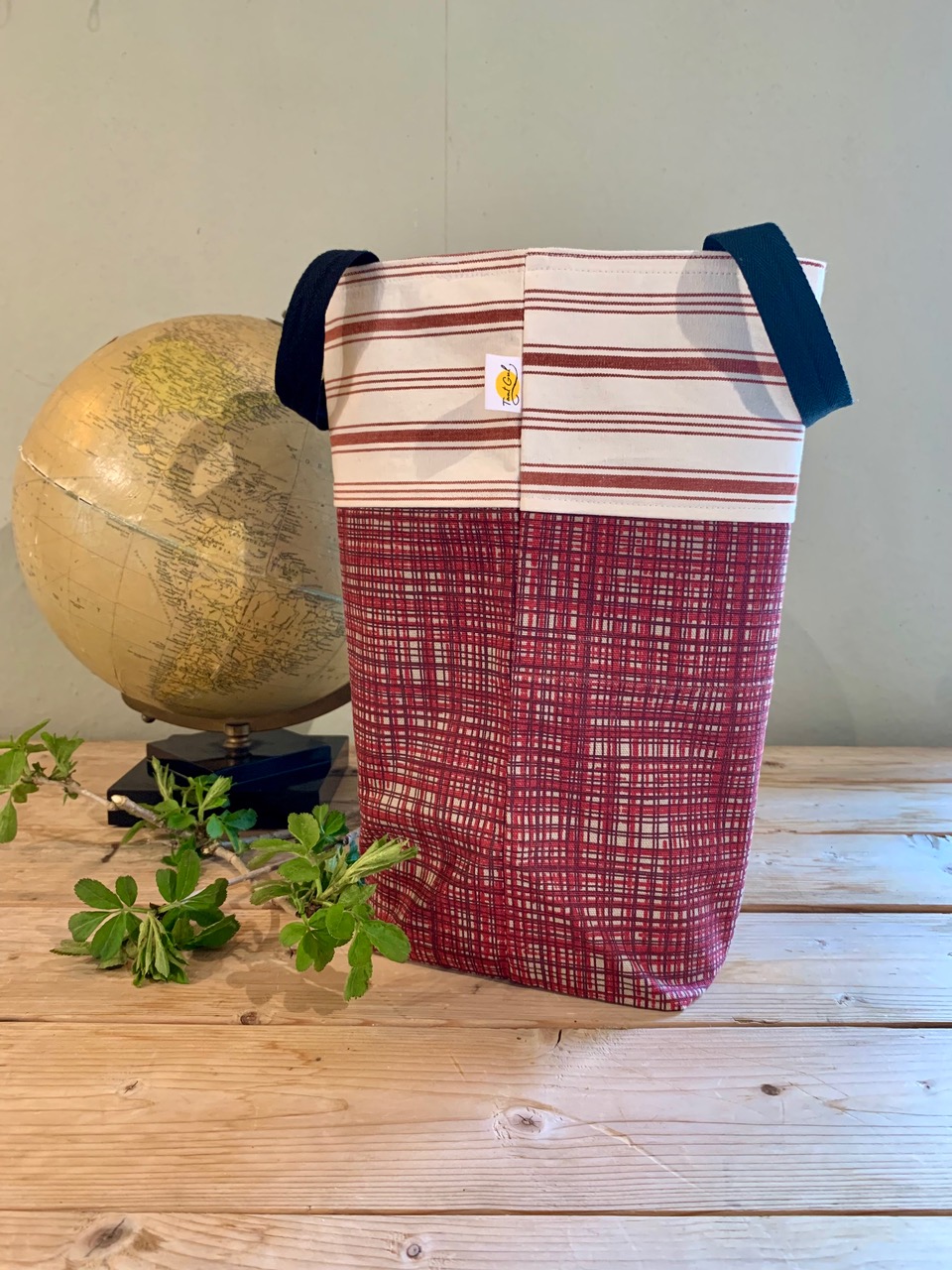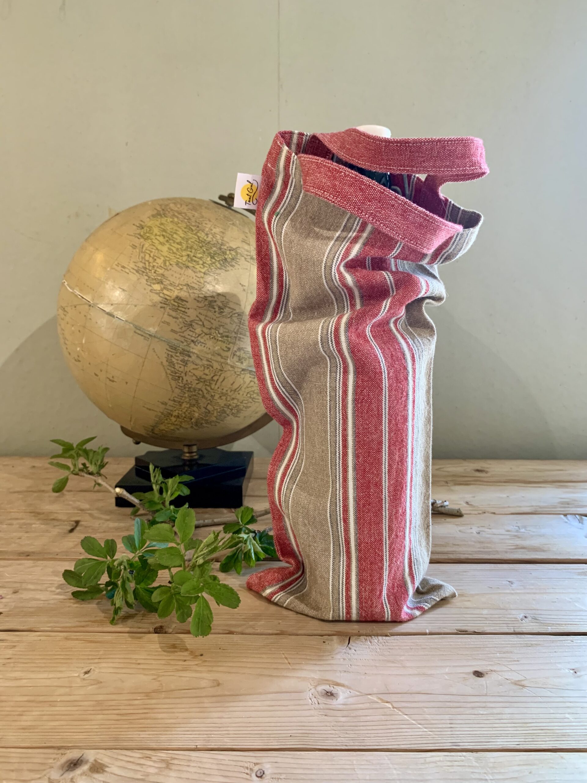 Handtag: randiga i rött och vitt