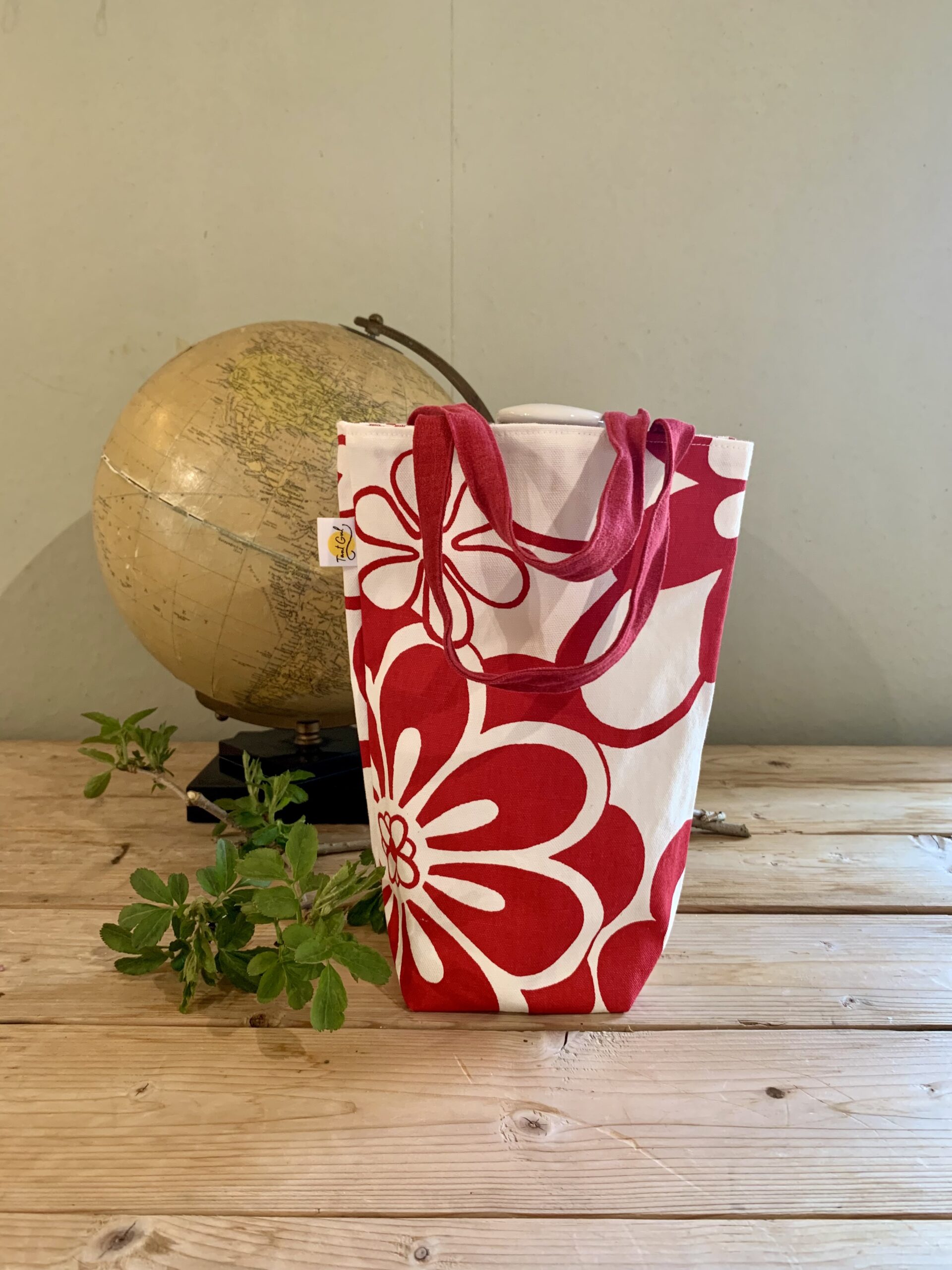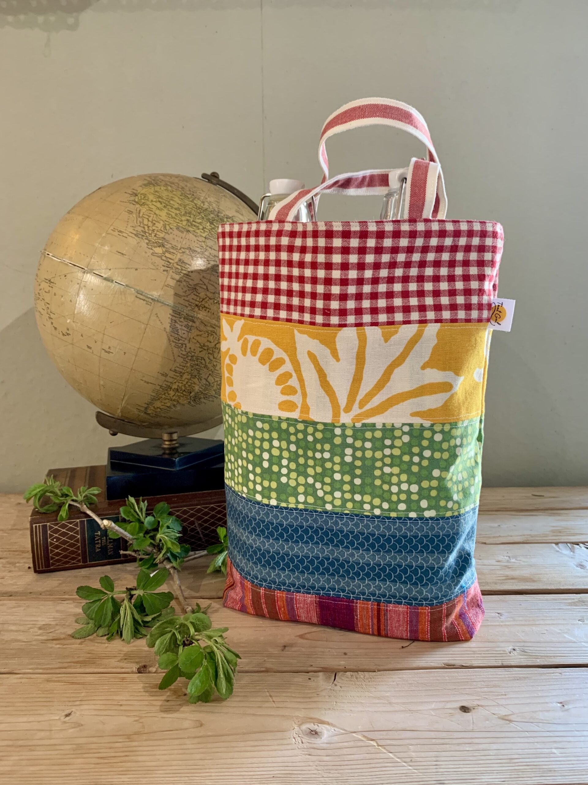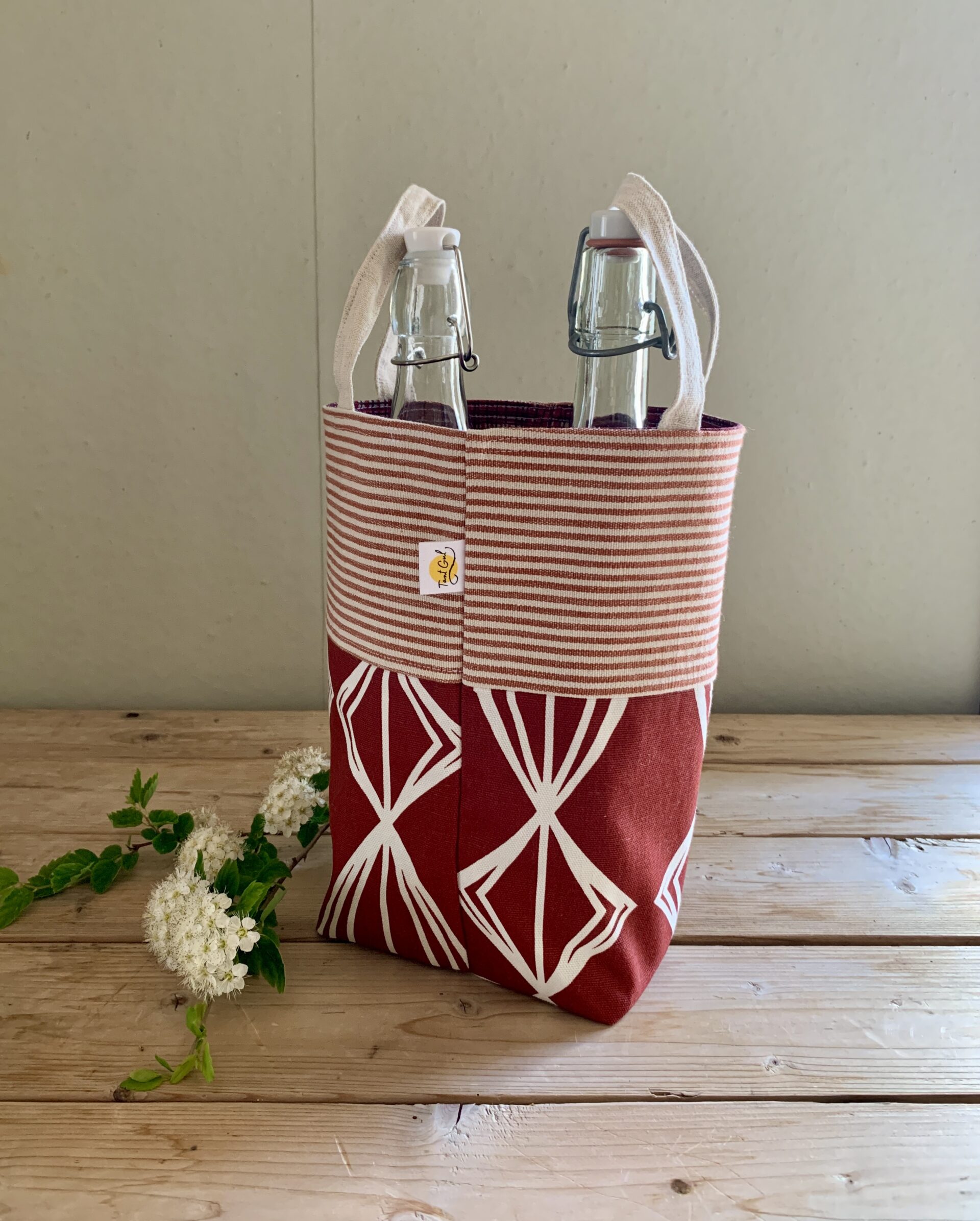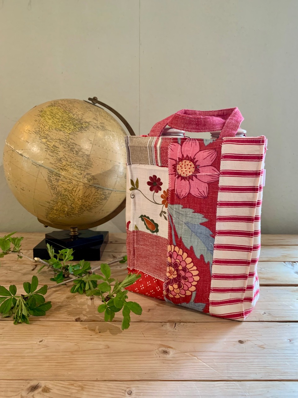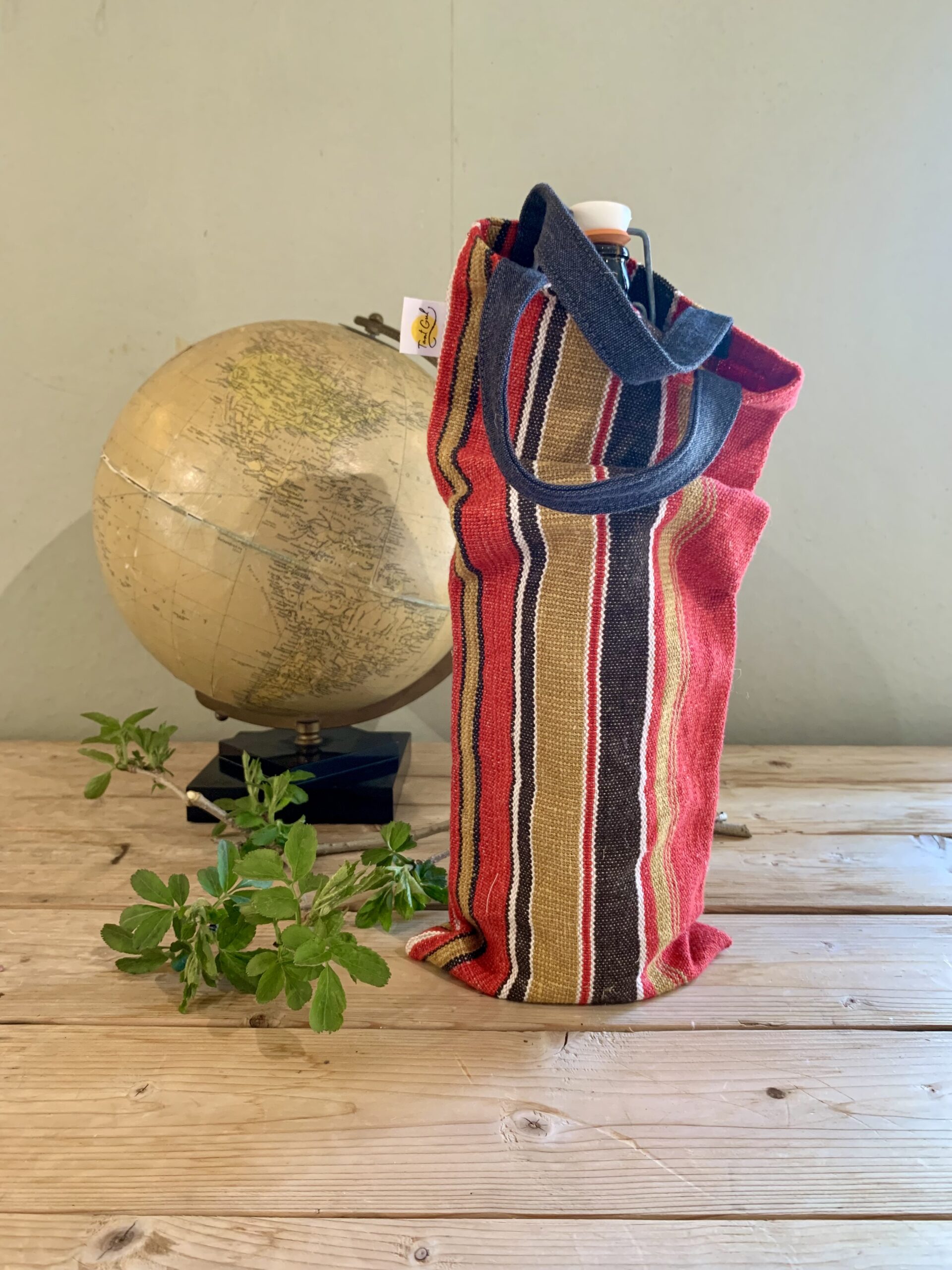 Handtag: randiga i rött och vitt