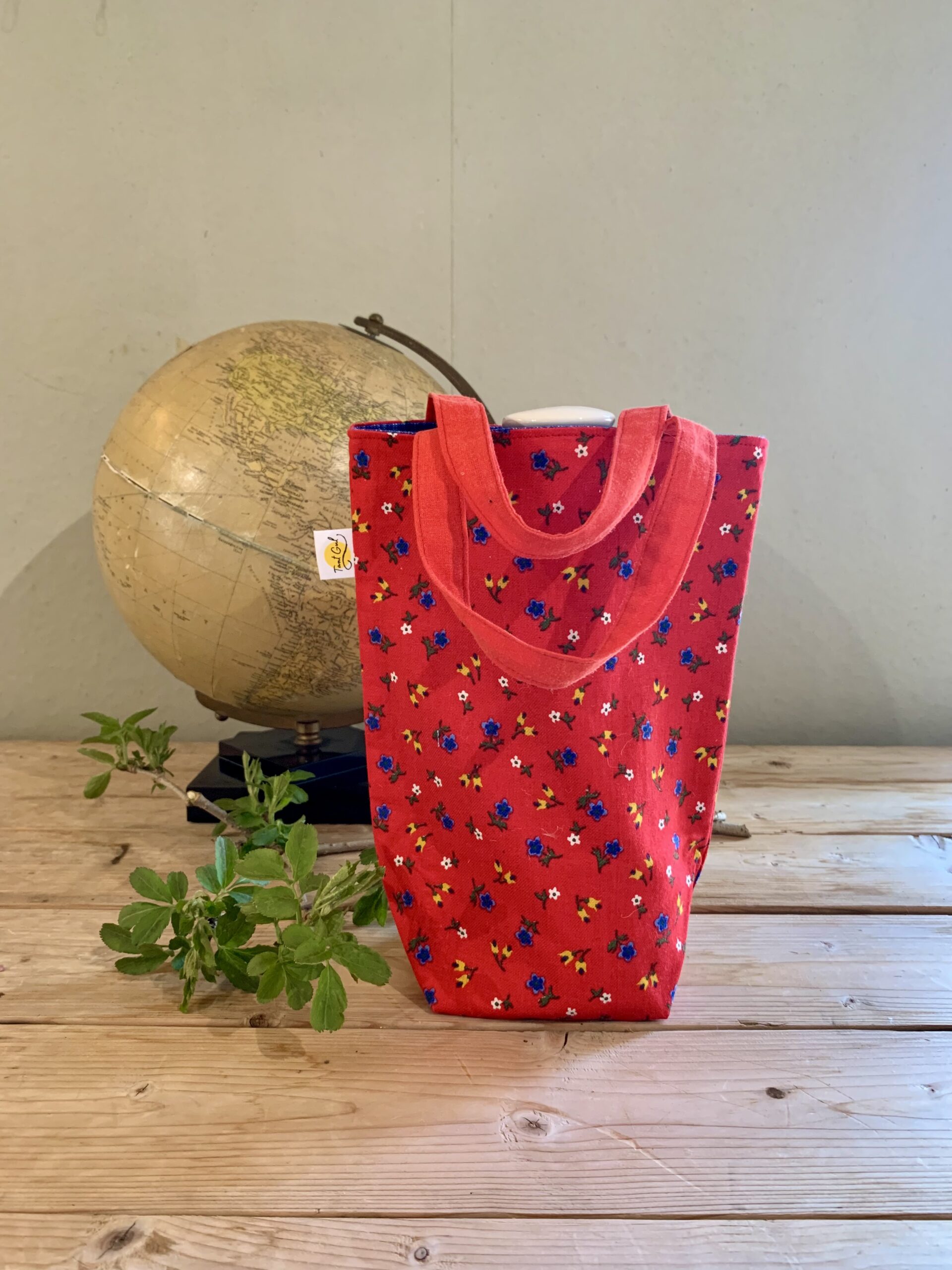 Yttertyg: gula, blå och vita blommor på röd botten