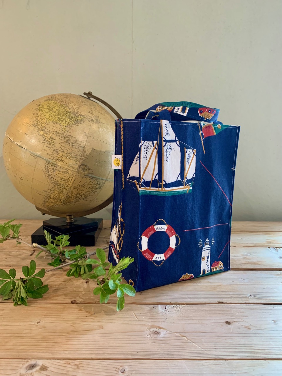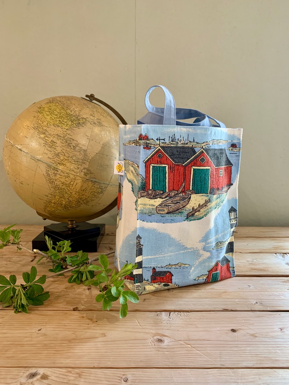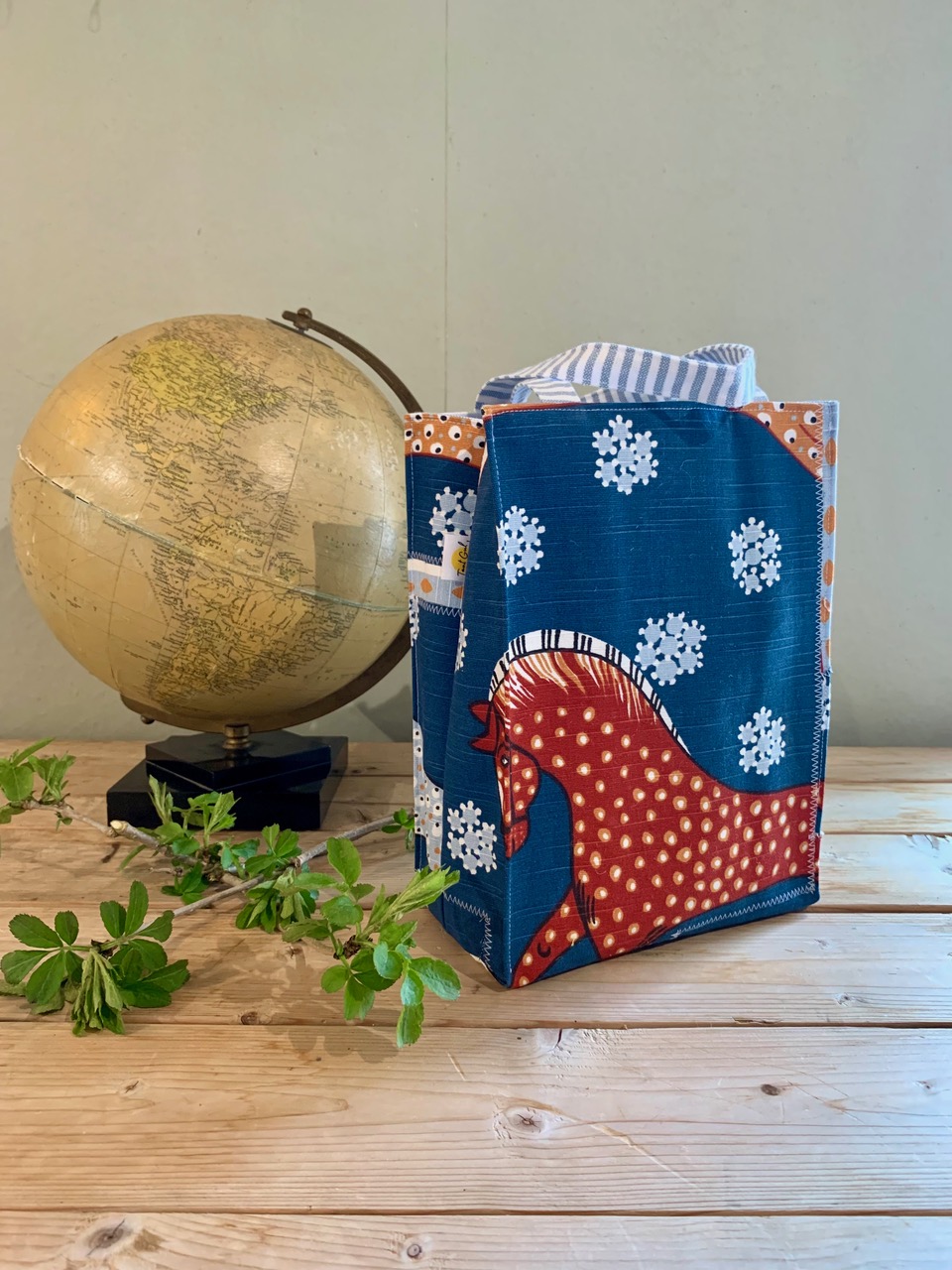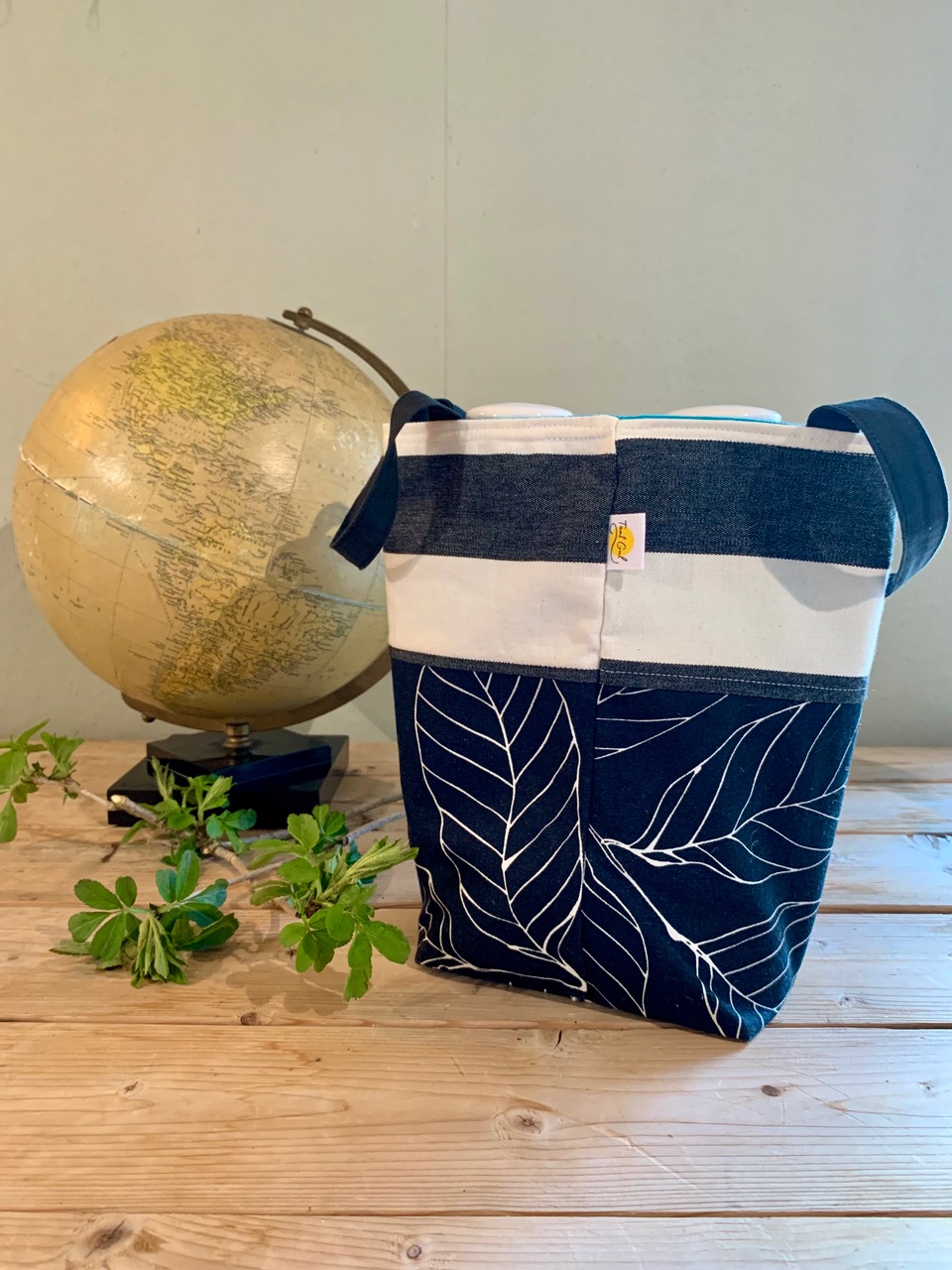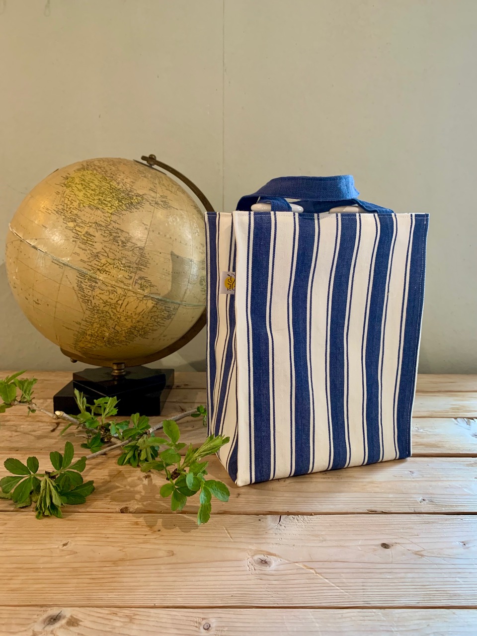 Handtag: randiga i blått och vitt