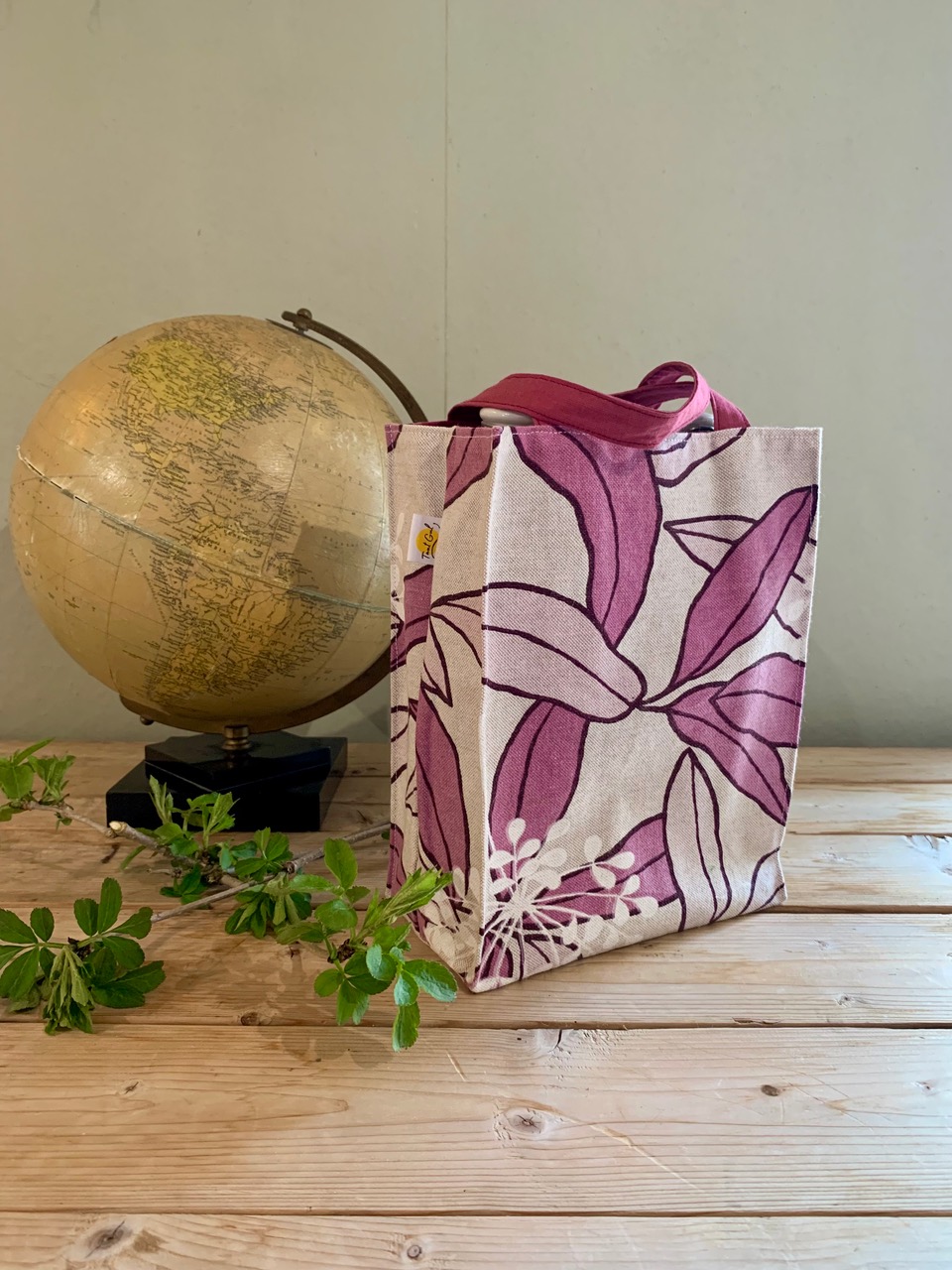 Foder: gråbeige med bleka blommor och blad
