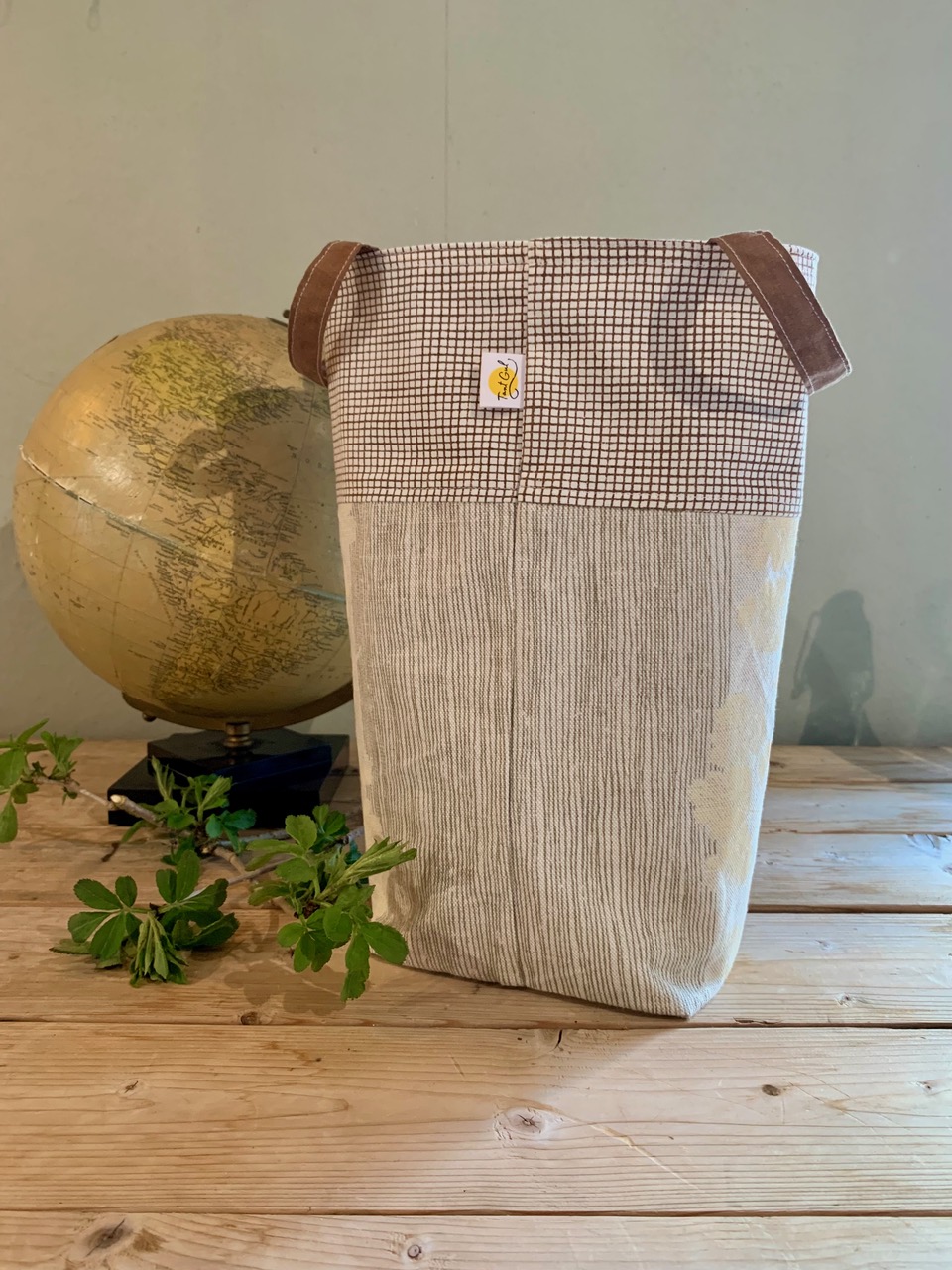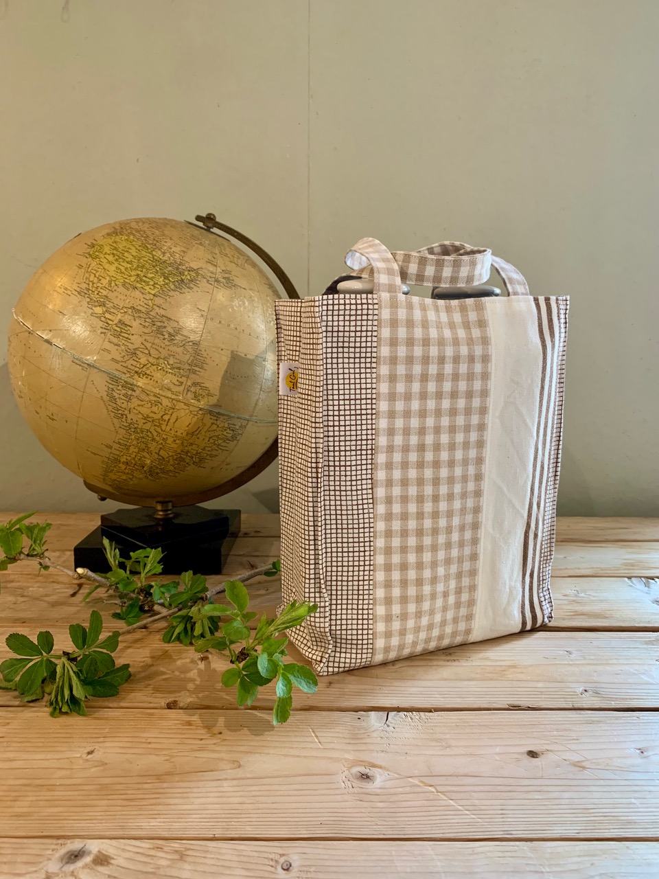 Handtag: rutiga i brunt och grått
