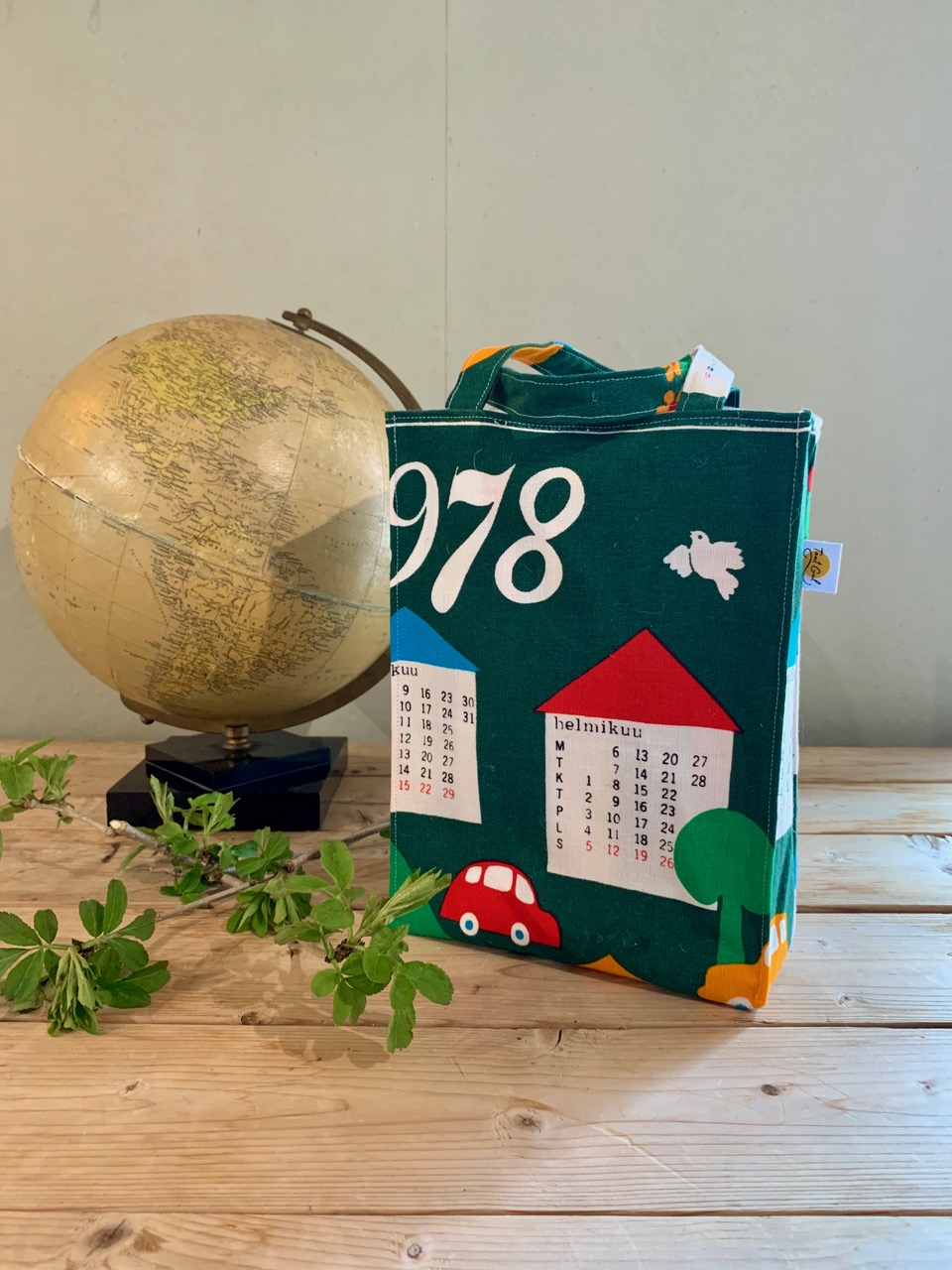 Yttertyg: en fd kökshandduk i olika färger, motiv: kalender på finska