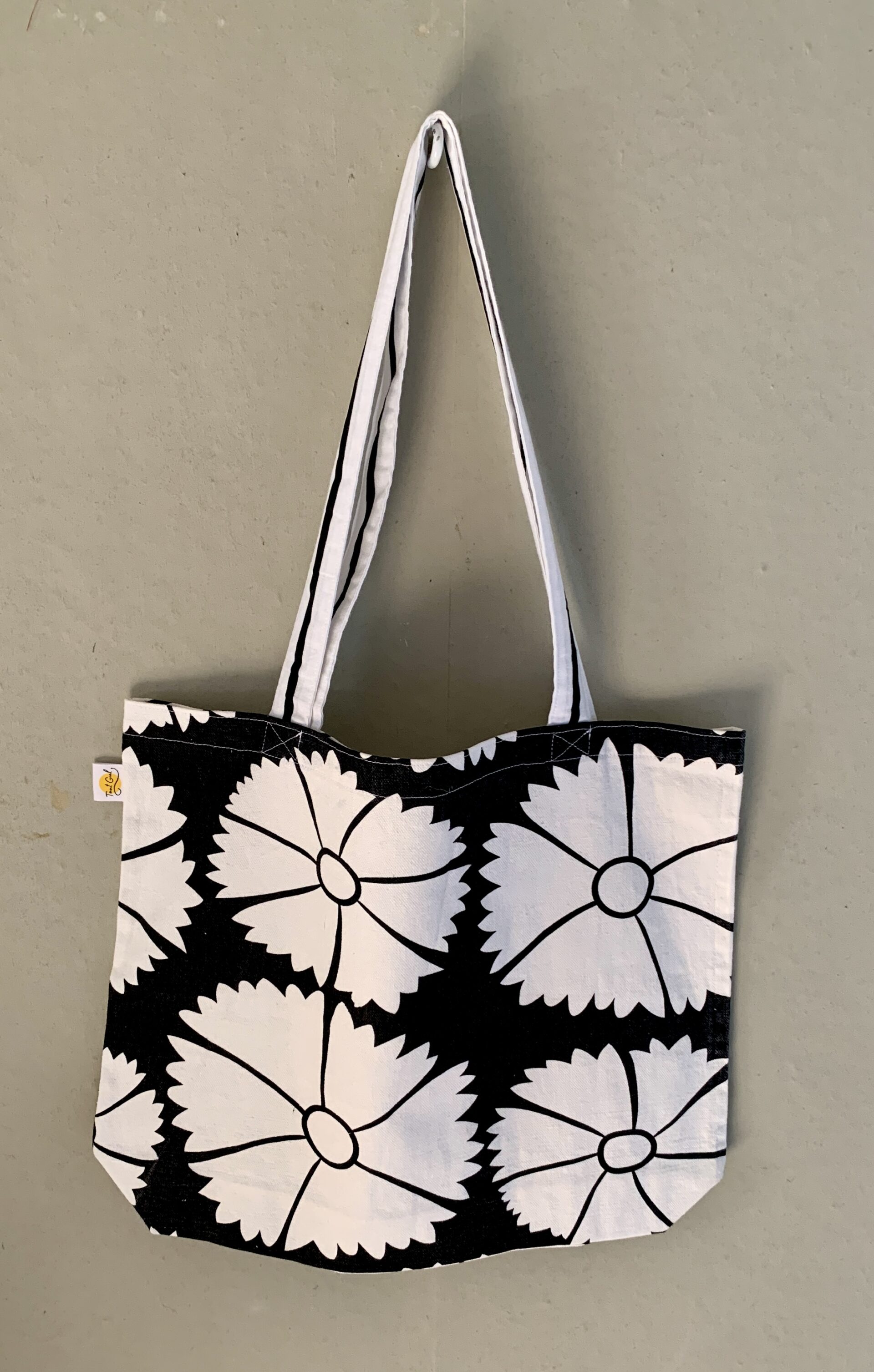 Tyg: vita blommor på svart botten